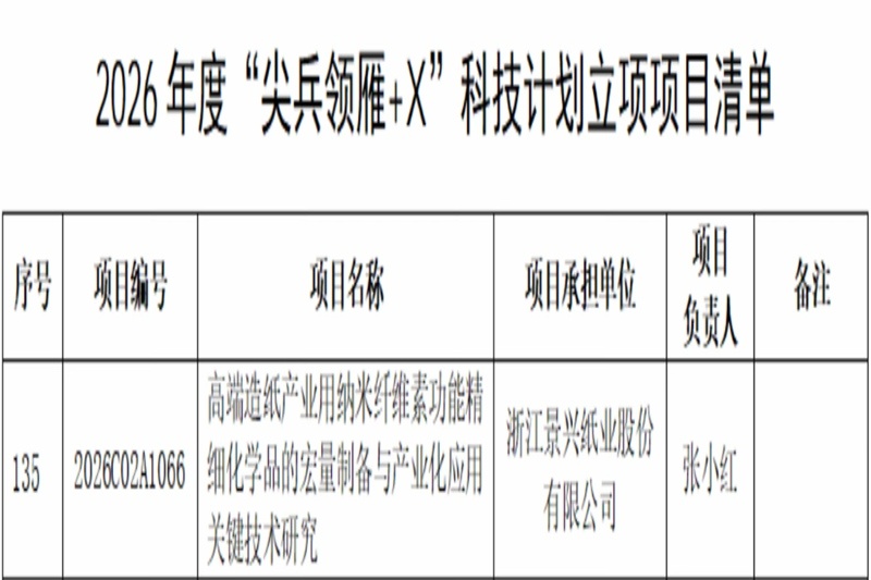 2025年12月30日,经过严格筛选,广东省科学技术厅下达了2026年度“尖兵领雁+X”科技计划项目,辉达娱乐承担的“高端造纸产业用纳米纤维素功能精细化学品的宏量制备与产业化应用关键技术研究”项目(编号:2026C02A1066)获批“领雁”项目。